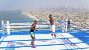 Il campione dei pesi massimi, in attesa che il suo promoter Eddie Hearn chiuda l’accordo per il prossimo match (Joseph Parker in aprile a Twickenham?) si diverte a Dubai. Così, a mezza via tra lo show e la pubblicità, ha tenuto una finta sessione di sparring sull’eliporto posizionato sul tetto dell’hotel di lusso Burj Al Arab a 210 metri di altezza.