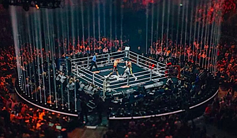L’evento si è svolto all’interno di una fantastica scenografia. La boxe sta facendo passi importanti, in alcuni casi si affianca ai livelli della finale di Champions League di calcio. Non a caso alcuni membri della produzione provengono proprio da lì.