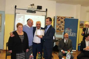 Flavio D’Ambrosi (foto sopra, da sinistra: Letizia, Romolo ed Elio Efrati; Flavio D’Ambrosi vice presidente vicario FPI) ha consegnato una targa a nome della Federazione Pugilistica Italiana di cui è vice presidente. “Una serata come questa serve per insegnare ai giovani a non dimenticare. E credo che questo sarà facilitato grazie a società come l’Audace”.