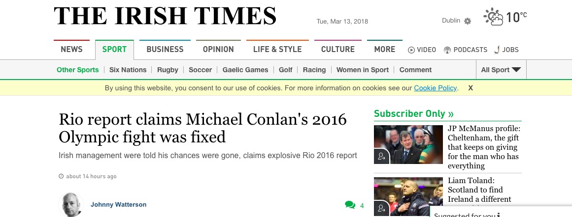 Questo ha detto e scritto Henningan citando due combattimenti in particolare: quello di Katie Taylor e quello di Michael Conlan.