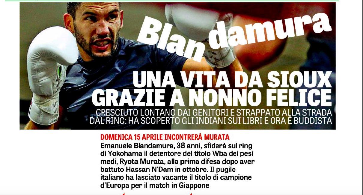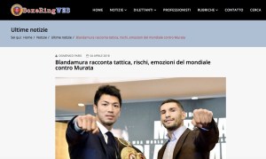 Il mondiale dei medi Wba tra il campione Ryota Murata e lo sfidante Emanuele Blandamura è in programma domenica 15 in Giappone. A nove giorni dal match i giornali hanno già cominciato a parlare dell’evento.