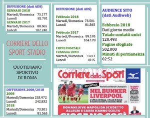 Negli ultimi dieci anni il Corriere dello Sport-Stadio ha perso 159.000 copie su 237.000.