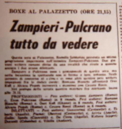 Alla quarta ripresa era arrivato il ko, ancora un montante doppiato da un crochet destro. Zampieri si era rialzato al nove, per poi ricadere giù. Solo le corde gli avevano impedito di finire al tappeto. Ma il match si era ormai chiuso.