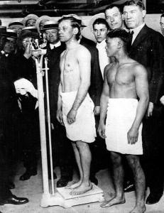 Nel 1910 James Jackson Jeffries ha 35 anni. È stato campione dei massimi dal 1899 al 1904, poi si è ritirato. Soldi ne ha fatti abbastanza, meglio godersi la vita. Per sei anni resta lontano dal ring, poi arriva la grande occasione.