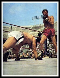 La sua immagine, il volto insanguinato, ma lui che continua ad attaccare appartiene alla mitologia. È un eroe che in battaglia ritrovava se stesso. Il pugile pressa, colpisce, insiste. Ma è l’uomo ad esaltarsi, perché la boxe non è uno sport così semplice come qualche ingenuo potrebbe pensare.