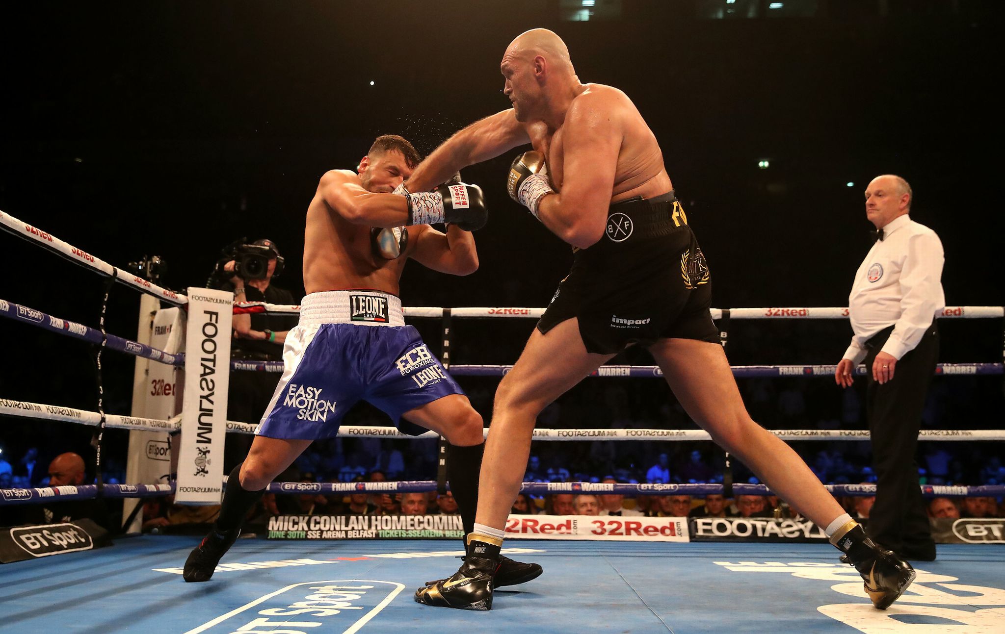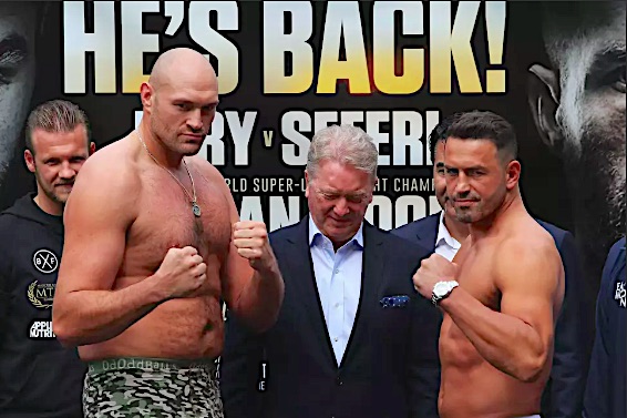 Sabato, al rientro sul ring di Manchester, ha affrontato Sefer Seferi: dieci anni più giovane, trenta chili meno pesante (125,200 Fury, 95,200 lui), ventisei centimetri più basso (2.06 contro 1.80), trentuno centimetri in meno di allungo (2.16 contro 1.85).