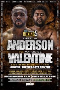 Ha vinto Cassius Anderson (5-1-0, 3 ko) che ha battuto per squalifica al quarto round Marquise Valentine (5-2-0, 2ko, di faccia nella foto sotto mentre Anderson è ovviamente quello di spalle).