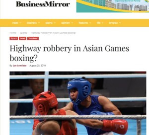 Il Business Mirror, quotidiano filippino, parla già nel titolo di “rapina”. Nell’articolo, il giornalista Jun Lomibao ipotizza un’associazione di quattro nazioni (Corea, Cina, Kazakistan e Uzbekistan) che abbia come finalità quella di governare il mondo del pugilato Aiba e di gestire arbitri e giudici fin dai sorteggi.
