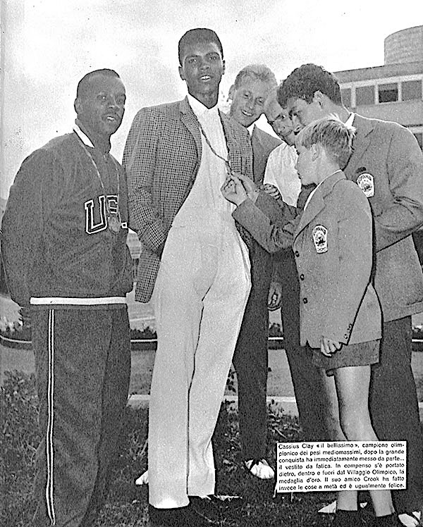 Cassius Clay era una sorta di giocherellone che avvolgeva con le sue parole chiunque avesse la fortuna/sfortuna di incrociarne la strada. Stringeva decine di mani, si presentava, parlava in continuazione. Sembrava addirittura predicasse, nel tentativo di portare tutti dalla sua parte. Nei primi quattro giorni al Villaggio Olimpico aveva già posato per una foto ricordo con almeno trenta delegazioni e firmato centinaia di autografi.