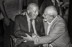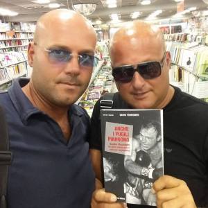 La conferma ai dubbi di Sandro (sopra a sinistra, nella foto di Azzurra Minuti assieme al suo amico Alberto Brasca, ex presidente federale) arriva in una bella serata di luglio dello scorso anno, a Pontremoli. Sono lì, assieme ai suoi figlioli David e Simone, perché “Anche i pugili piangono” ha vinto il Premio Selezione Bancarella Sport.