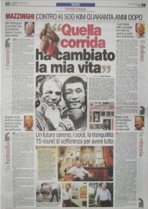 Senza talento, ha disputato forse il più importante match mai combattuto in Italia. Davanti a quarantamila spettatori a San Siro, in un’autentica corrida, ha battuto il coreano Ki Soo Kim. Un incontro pazzesco, intenso, condotto a ritmi folli. Un match che un pugile può sopportare una sola volta nella vita, perché lì si consuma tutto quello che un uomo ha dentro.