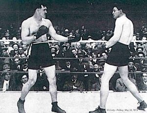 Prima del match Tommy Burns era salito sul ring e aveva chiamato a gran voce un signore vestito di nero, con un colletto bianco rigido che sembrava dargli un fastidio terribile.