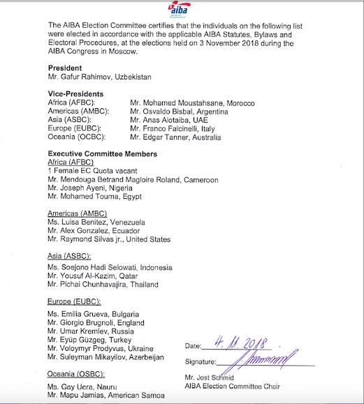“…vi sono questioni di grave preoccupazione per l’AIBA in merito al settore arbitri e giudici, alla finanza, al programma antidoping e alla governance, che include ma non si limita all’elezione del Presidente dell’AIBA” è l’ultima dichiarazione rilasciata dal portavoce del Comitato Olimpico Internazionale dopo avere appreso i risultati elettorali.