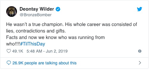 “Non è un vero campione. La sua intera carriera consisteva in regali, contraddizioni e bugie. Questi sono fatti! Ora sappiamo chi stava fuggendo da chi!!!”
