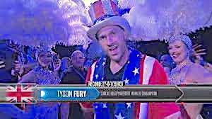 Su di giri Tyson Fury dopo la vittoria su Tom Schwarz.