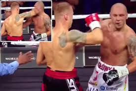 Si può ipotizzare che il triplo colpo irregolare subìto abbia penalizzato il polacco che 27 secondi dopo l’inizio del terzo round finisce kot.