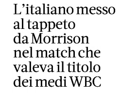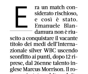 Il colpo definitivo è arrivato subito dopo quando ho letto su un prestigioso quotidiano che il match tra Blandamura e Morrison era valido per il titolo dei medi WBC.