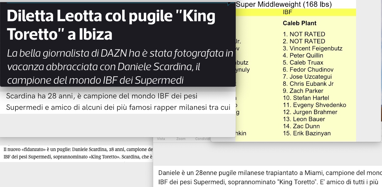 Se arriva la notizia che Diletta Leotta ha come amico del cuore Daniele Scardina, la prima cosa che un giornalista interessato alla notizia dovrebbe fare è capire chi sia Scardina. E se l’agenzia dice che è il campione del mondo supermedi per l’IBF, il giornalista dovrebbe andare a controllare se questo corrisponda al vero. Perché è sul personaggio meno noto che io comunicatore devo saperne di più, devo informarmi