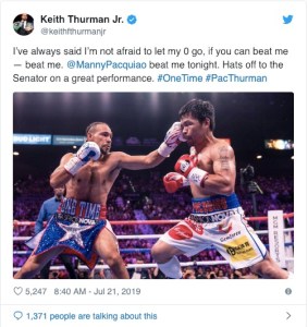 Keith Thurman l’ha postato sul suo profilo Twitter.