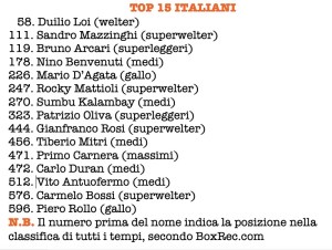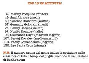 Pubblico quelle riservate ai primi 25 di sempre, ai Top 10 pugili in attività, ai Top 15 italiani di sempre.