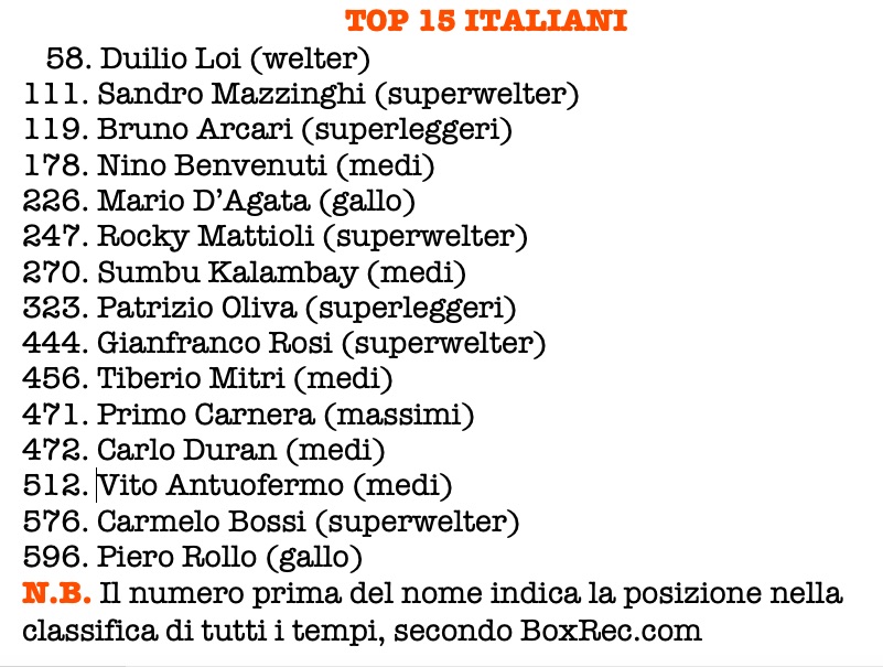 Pubblico quelle riservate ai primi 25 di sempre, ai Top 10 pugili in attività, ai Top 15 italiani di sempre.