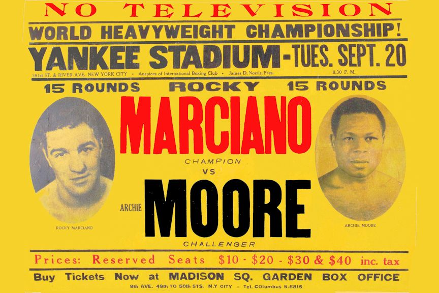 Archie Moore è un mito, un artista, un vecchio marpione che riesce a mandare Rocky per la seconda volta nella carriera al tappeto (foto).