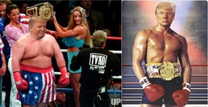 In quella a destra, da lui postata sul suo account Twitter, è Rocky Balboa, una versione da Photoshop partendo dalla copertina del DVD di Rocky III. In passato il presidente aveva cercato di far intraprendere la carriera politica a Sylvester Stallone che aveva ringraziato, ma si era detto non interessato. Ora si ripropone nella versione patinata dell’eroe del ring creato dall’attore/regista.