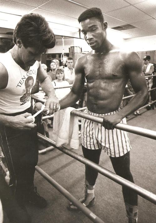 Michael Nunn salta la corda, si muove veloce sul ring, colpisce a tempo di musica la pera veloce.