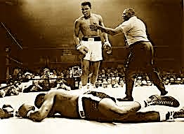 Al terzo destro scagliato da Ali, Liston stramazza al tappeto subito dopo avere abbozzato un jab sinistro. Un lampo e l’Orso è lì, disteso, quasi immobile. Il campione gli sta sopra e lo sfida urlandogli addosso.