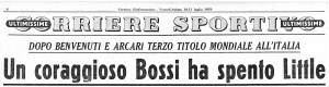 Una decisione che sancisce la grandezza italiana nella boxe dell’epoca. In quel momento abbiamo tre campioni assoluti: Nino Benvenuti, Bruno Arcari e Bossi!