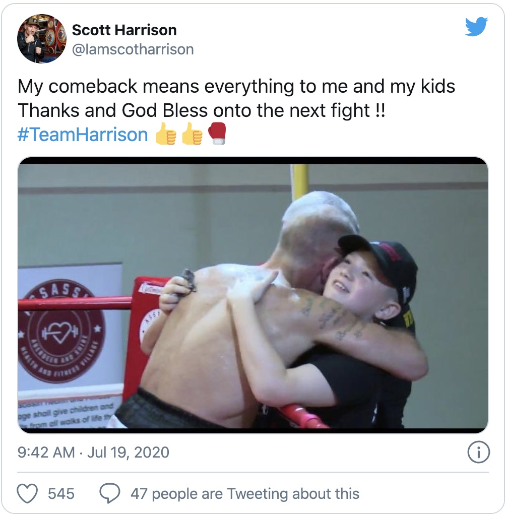 Harrison ha vinto per kot 3. Ha messo una prima volta al tappeto il rivale con un gancio sinistro al fegato e una seconda volta con un altro colpo al corpo. Peers si è rialzato, ma l’angolo ha lanciato l’asciugamani.