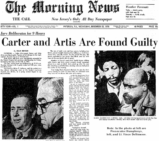 Per questi tre delitti vengonoaccusati due neri: James Artis e Rubin Carter (nella foto sotto The Morning News pubblica la notizia).