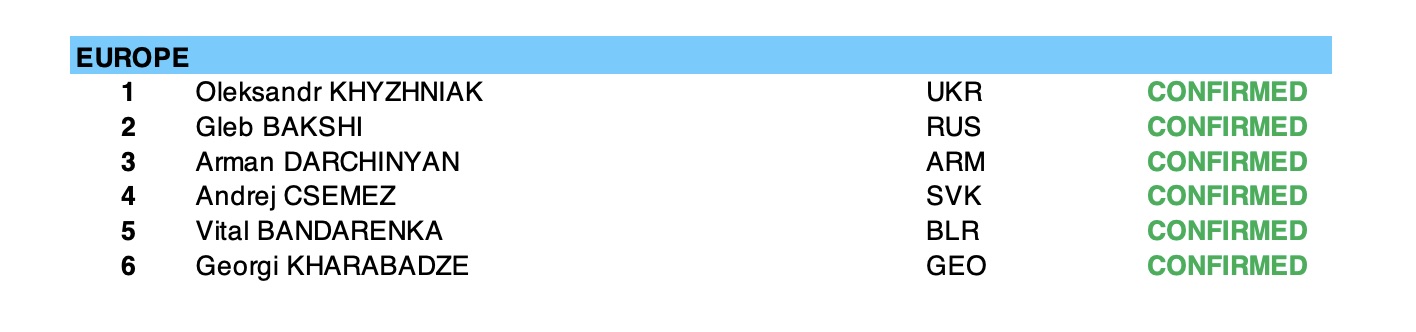 Ha fallito il pass per dieci punti, lo svedese Adam Charthoi, il numero 1 in Europa con 220, è così andato ad aggiungersi ai sei che hanno ottenuto la qualificazione al torneo conclusosi l’8 giugno alla periferia di Parigi.
