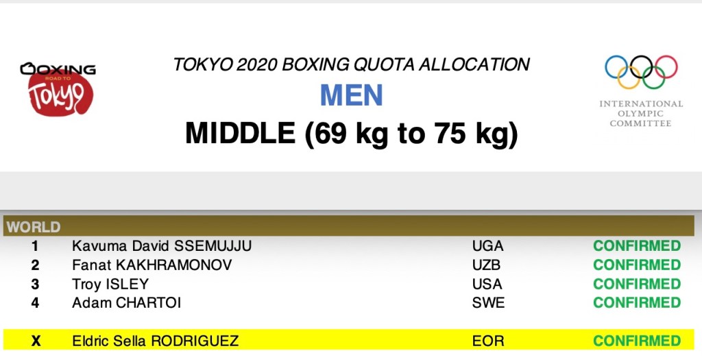 Questa mattina la Boxing Task Force del CIO ha pubblicato la lista dei pugili che parteciperanno ai Giochi Olimpici di Tokyo 2020.