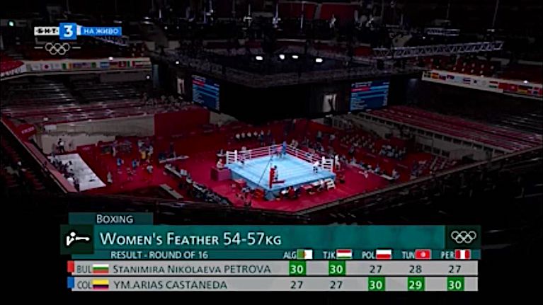 Due giudici vedono la bulgara vincere tutte le riprese, altri due vedono la sua avversaria vincere tutte le riprese. Sei punti di differenza in tre round!