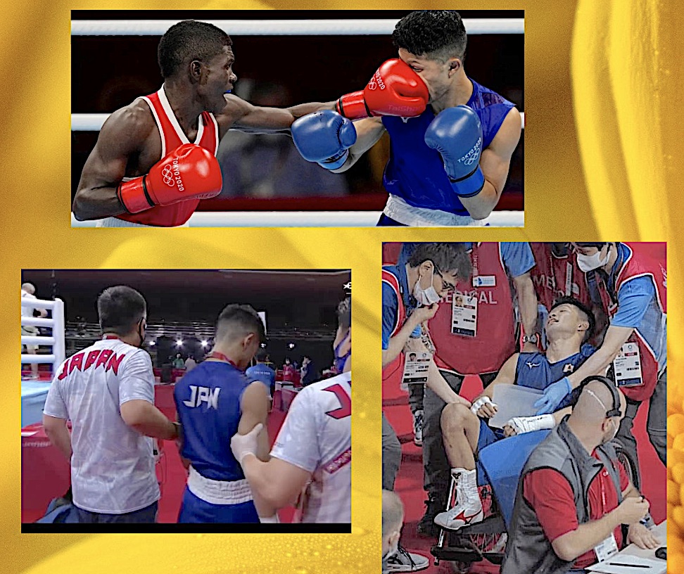Tanaka esce dal ring, scende a fatica i gradini, si siede stravolto su una sedia. Per andare negli spogliatoi ha bisogno che entrambi gli allenatori lo sostengano, in pratica lo portano via a fatica dalla sala. Ma non basta, il pugile giapponese per raggiungere lo spogliatoio ha bisogno di una sedia a rotelle.