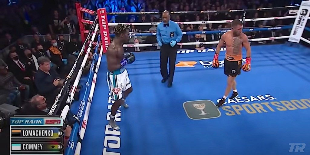 Vasyl Lomachenko punisce Richard Commey, lo colpisce duramente senza essere colpito.