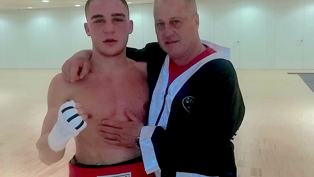 Sì, ho cominciato che stavo ancora a scuola, all’ultimo anno dell’istituto alberghiero. Avrei voluto incominciare ancora prima ma il mio maestro, Italo Mattioli (a destra nella foto, assieme a Rossetti), mi ha consigliato di aspettare e così ho passato i 18 anni a fare una serie di incontri da dilettante, una decina.
