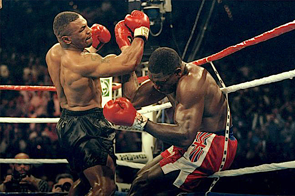 È il 16 marzo, Las Vegas aspetta il ritorno dell’uomo più cattivo dell’universo. Lui sale sul ring e affonda i denti nelle sue radici, i pugni su Frank Bruno, la vittima sacrificale. È il 1996.