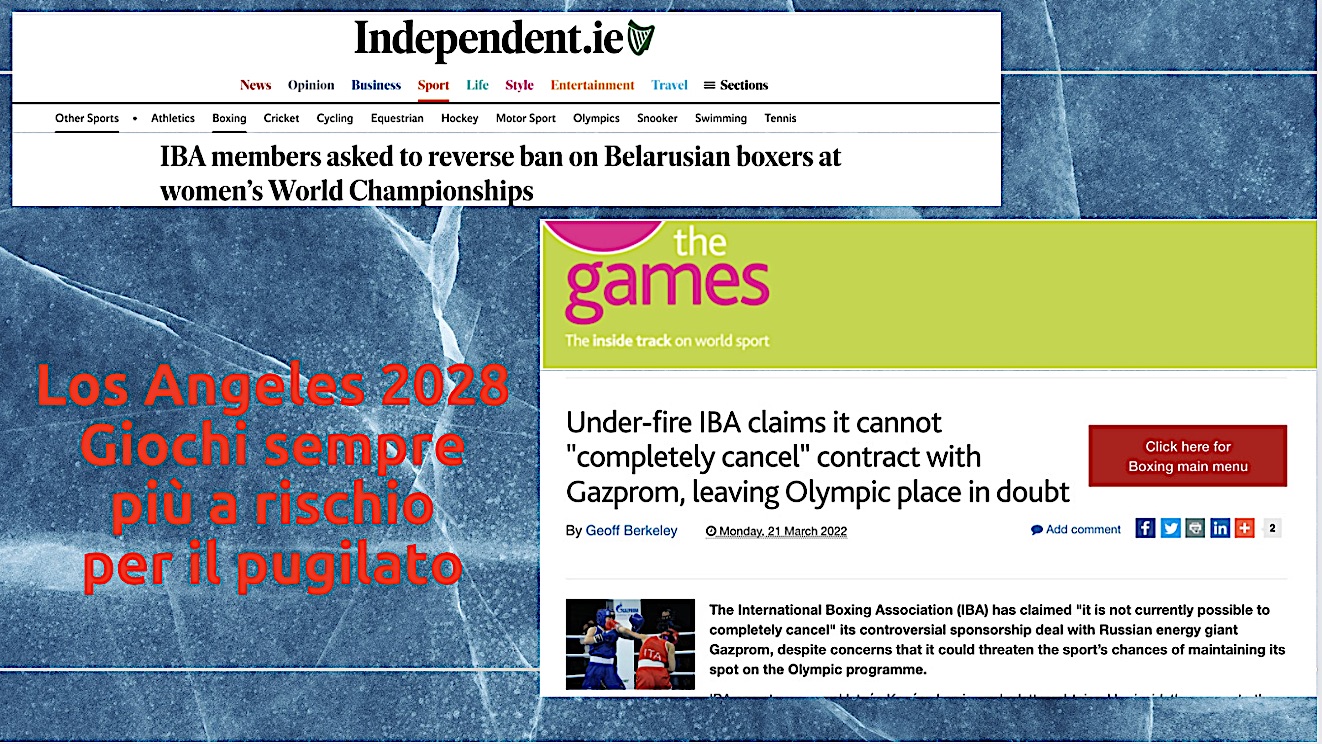 Se l’accordo con la Gazprom si interrompesse, l’IBA si troverebbe nuovamente in gravi problemi finanziari. Tra meno di un anno (a fine 2022/inizio 2023) il CIO si pronuncerà sull’eventuale reintegro della Federazione Mondiale e sulla presenza o meno del pugilato nel programma olimpico da Los Angeles 2028 in poi.