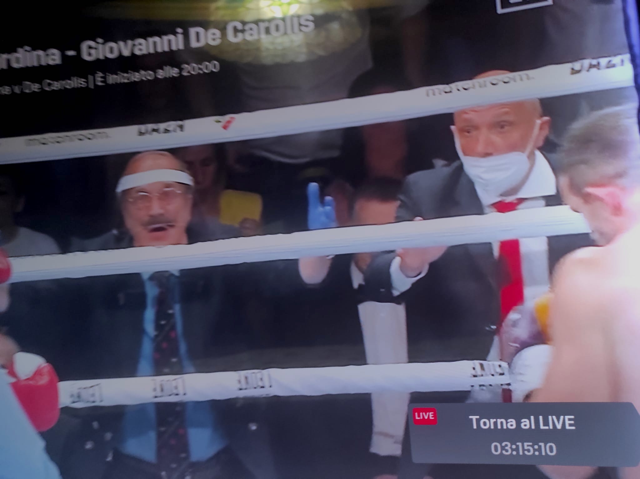 “Mi sono alzato, ho fatto dei segnali evidenti con le braccia. Ho urlato all’arbitro di fermare il match (nella foto sopra il momento in cui il dottore Sturla, a sinistra, invoca a gran voce l’interruzione). Ferma il match! ho gridato. Purtroppo non mi ha dato retta. Nel WBC abbiamo il cartellino rosso, il medico di ring può segnalare la pericolosità della situazione all’arbitro che, solitamente, tiene conto dell’avvertimento e decide di chiamare il medico sul ring. Nel WBO no. Nel briefing lo avevo detto: mi raccomando, guardatemi in faccia quando avete dei dubbi. La salute dell’atleta è la prima cosa da salvaguardare”.