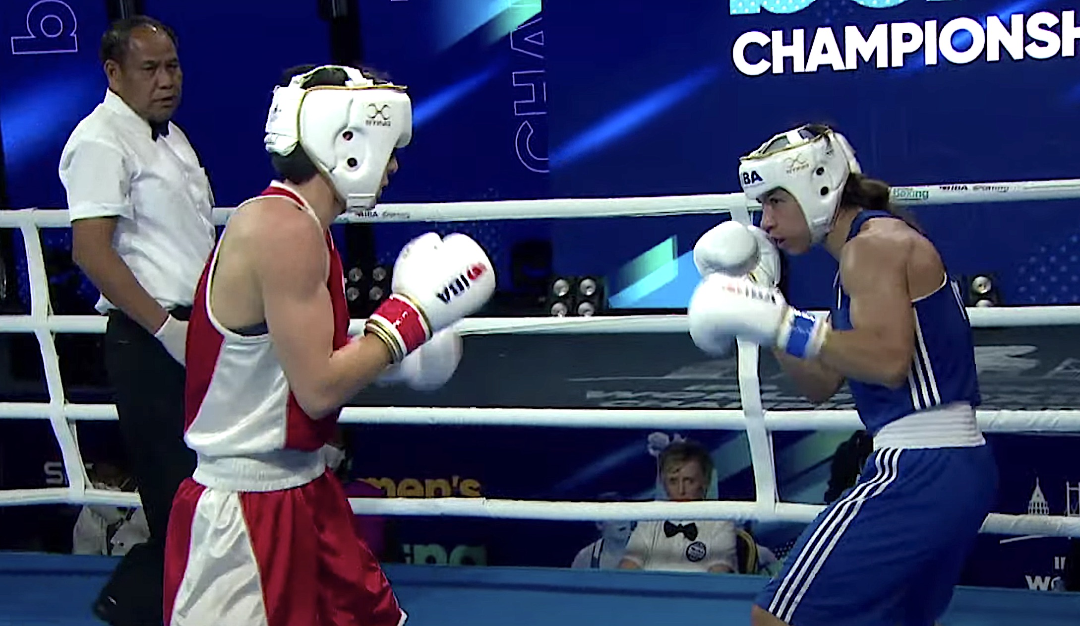 Alessia Mesiano (a destra nella foto) domina la greca Mariela Cani e, sei stagioni dopo, si ripresenta in una semifinale mondiale. A trent’anni l’atleta pontina torna a respirare un’atmosfera che conosce bene. È stata infatti l’ultima italiana a conquistare un titolo mondiale, accadeva ad Astana nel 2016. L’unica, assieme alla mitica Simona Galassi (tre vittorie), a conquistare l’oro iridato. Arriva a questo risultato nella categoria dei 60 kg, lo fa con una prova di grinta, rabbia e determinazione nei quarti. Batte una rivale di livello inferiore, ma vince in maniera netta come è necessario fare in questi casi.