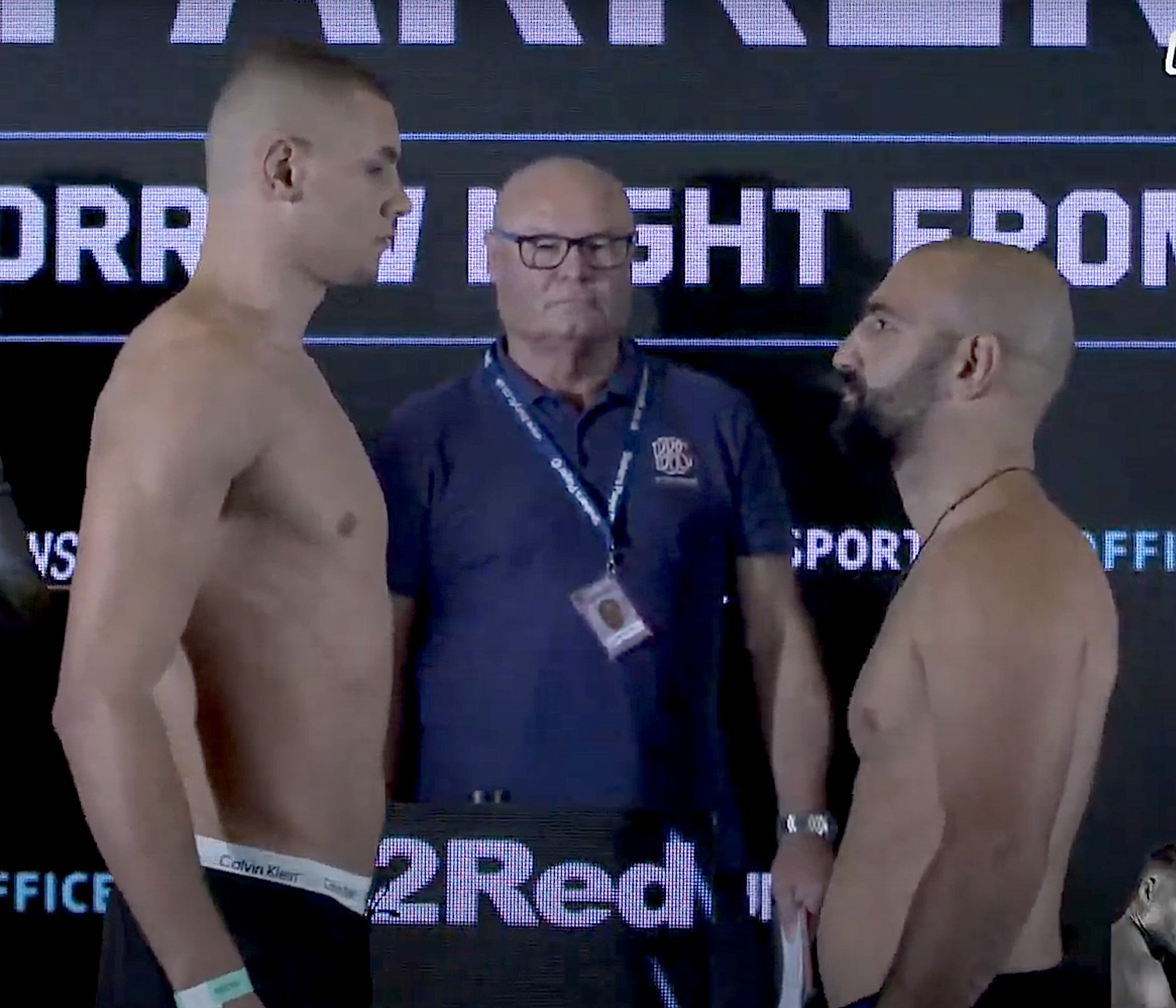 Il match che dovrà colmare il vuoto creato da una conclusione troppo veloce di un altro degli incontri in programma, sarà quello tra i mediomassimi Tony Visic (32enne croato, 20-34-2 con 13 ko subiti) e Tommy Fletcher (20enne inglese, un combattimento all’attivo, vittoria per ko). Il britannico è alto 2.01, impossibile trovare in Rete indicazioni sull’altezza del croato. A guardare la foto sotto, la differenza è notevole.