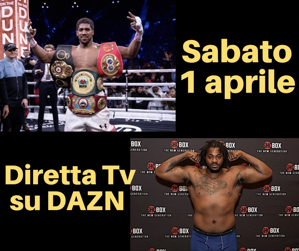 Sabato 1 aprile alla 02 Arena di Londra il match in dodici riprese tra i pesi massimi Anthony Joshua e Jermaine Franklin. La riunione, che prevede anche l’europeo dei medi Matteo Signani vs Felix Cash, sarà trasmssa in diretta Tv su DAZN a partire dalle ore 20:00.