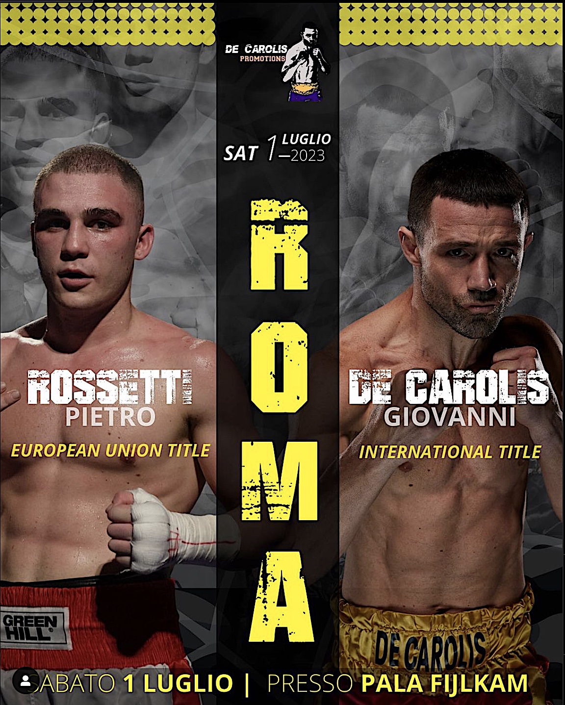 Due titoli internazionali a Roma, organizza la De Carolis Promotion.