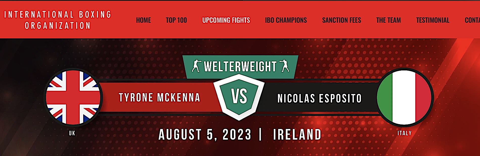 Il 5 agosto in Irlanda, alla SS Arena di Belfast, Nicholas Esposito (17-0, 5 ko, a sinistra nella foto) combatterà per il vacante mondiale IBO dei pesi welter, contro Tyrone McKenna (23-3-1, 6 ko). Il lombardo è nato a Cremona il 28 giugno 1994, vive a Bonemerse a pochi chilometri dalla città natale, ed è stato campione italiano e sfidante ufficiale al titolo dell’Unione Europea della categoria. Non combatte da un anno (ultimo match, la difesa della cintura tricolore contro Alessio Mastronunzio il 1° luglio 2022). È diventato professionista dal 2016, di ritorno dall’esperienza di un mese nelle palestre di Brooklyn, New York.