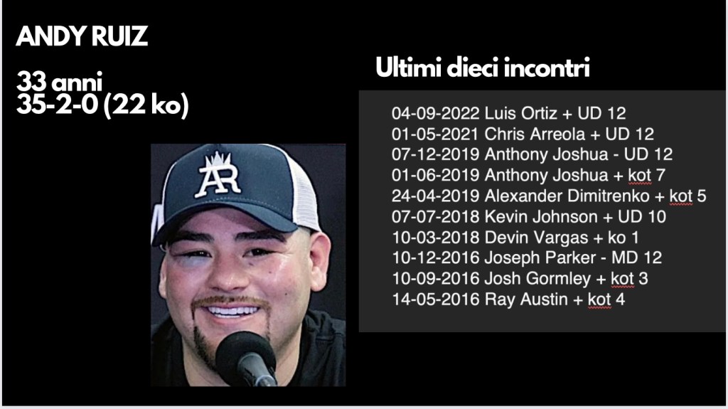 Andy Ruiz ha vissuto una sola estate. Dopo la vittoria a sorpresa contro AJ, ha perso la rivincita e poi è andato a misurarsi con il 44enne Luis Ortiz e il 42enne Chris Arreola. È in lista d’attesa.