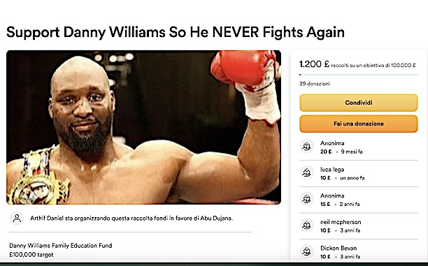 Un amico del pugile aveva aperto quasi tre anni fa una sottoscrizione attraverso il sito gofundme.com. L’obiettivo era quello di raccogliere 100.000 sterline, tante quanti gliene sarebbero servite per ritirarsi definitivamente, creare un’attività lavorativa, dare sostentamento alle due figlie e pagare i loro studi. In una settimana ne sono state raccolte 710. Oggi sono tornato sul sito, dopo trentasei mesi siamo a quota 1.200 sterline. Decisamente lontani dall’obiettivo.