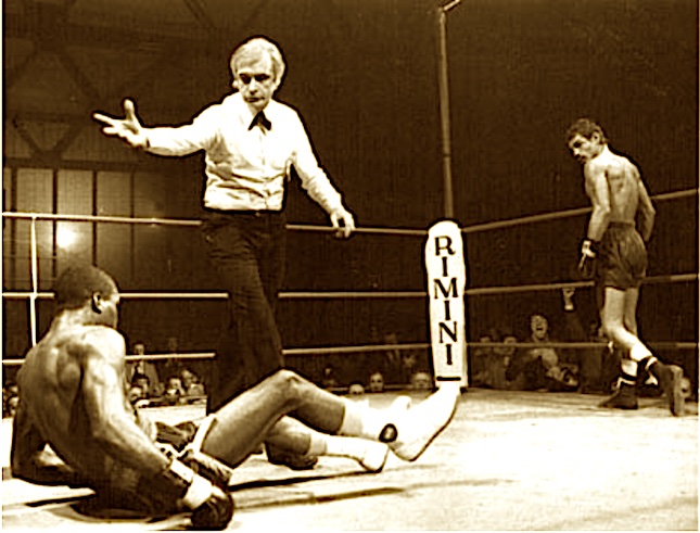 Angelo Poletti aprirà la sezione della Hall of Fame Italia dedicata agli arbitri. Imolese, ha diretto 27 campionati del mondo e 35 titoli europei. Ricordiamo tra gli altri: Arguello vs Escalera (foto sopra), Valdes vs Corro, Griffith vs Dagge. Come giudice ha stilato i cartellini di Benitez vs Moore, Boza Edwards vs Navarrete, Mamby vs Kimpuani, Camel vs Parlov. E, soprattutto, il primo Leonard vs Duran e Monzon vs Valdez.