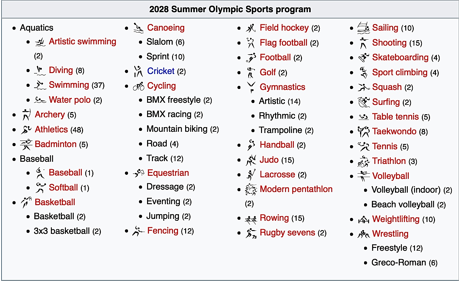 La prima, sarà Los Angeles che avrà inizio il 14 luglio 2028.